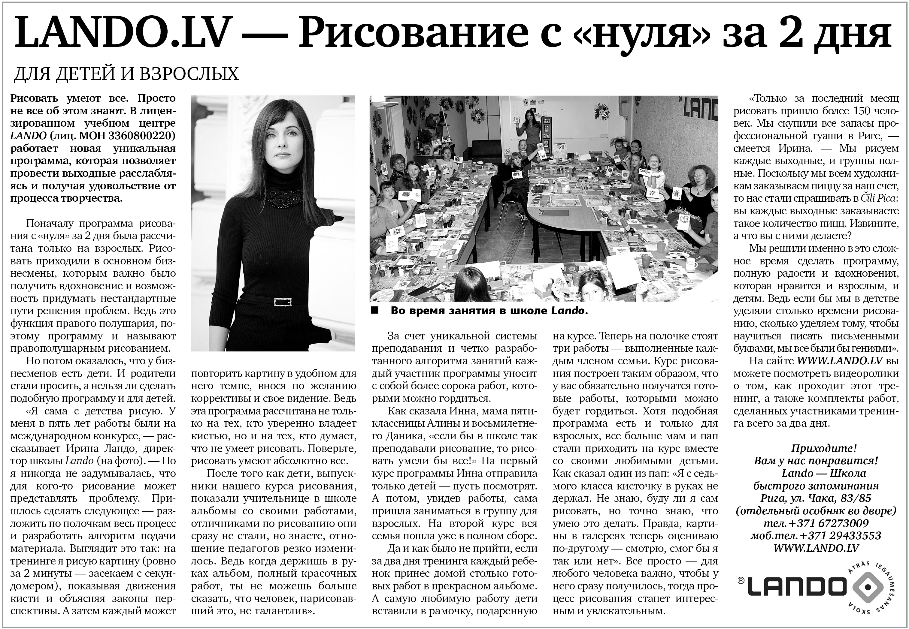 На сайте WWW.LANDO.LV вы можете посмотреть видеоролики о том, как проходит этот тренинг, а также комплекты работ, сделанные участниками тренинга всего за два дня.