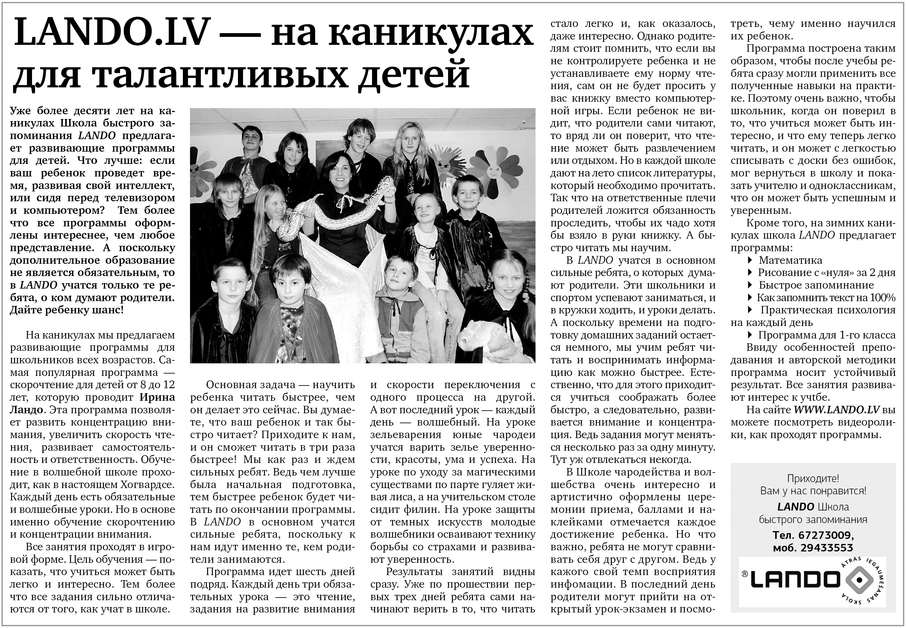 Ирина Ландо - LANDO.LV – на каникулах для талантливых детей.