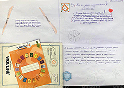 Математика 2 - 3 класс в Lando отзывы школьников. Занятия на каникулах 6 дней по 3 часа. С перерывами, чайными паузами, печеньем и веселыми играми. Мне понравилось, что мы играли в кубики, четвертый лишний, в умноженное лото. Мы решали задачи про воду, дядю Федора, преступников, про Незнайку и свои придуманные задачи. Еще мы чертили циркулем круги и полукруги, из них получались цветы. Сначала мы решали разминки в начале учебного дня, а потом занимались и решали задачи (из контрольных работ Кирилла). Для меня новая работа была циркулем. Больше всего мне понравилось переливать воду. И ещё мы должны были отвечать на самые сложные примеры в таблицах, и все в подарок получили Сумки, ручки, тетради и книги от Ландо.